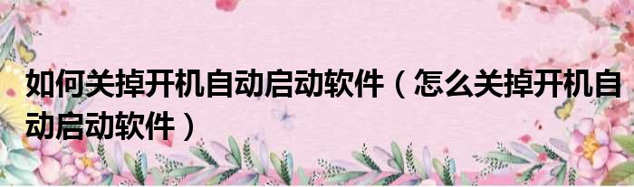 如何关掉开机自动启动软件(怎么关掉开机自动启动软件)