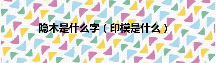 大家好,今天小六子来为大家解答以下的问题,关于隐木是什么字,印模是什么这个很多人还不知道,现在让我们一起来看看吧!