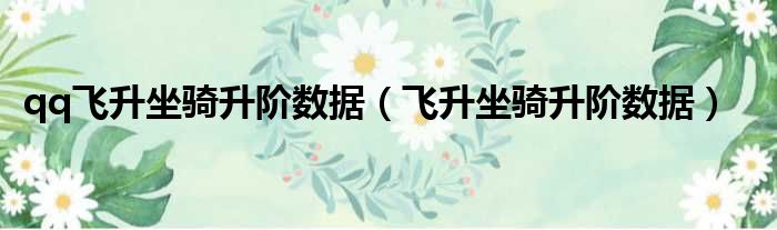 qq飞升坐骑升阶数据(飞升坐骑升阶数据)