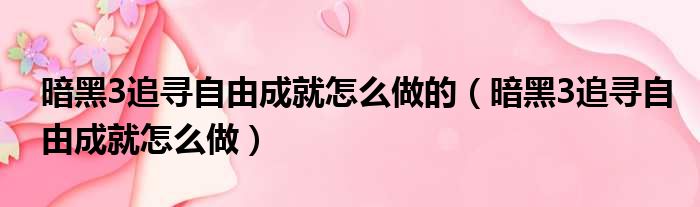 暗黑3追寻自由成就怎么做的(暗黑3追寻自由成就怎么做)