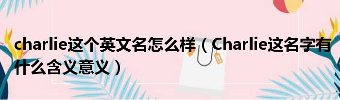 charlie这个英文名怎么样(Charlie这名字有什么含义意义)