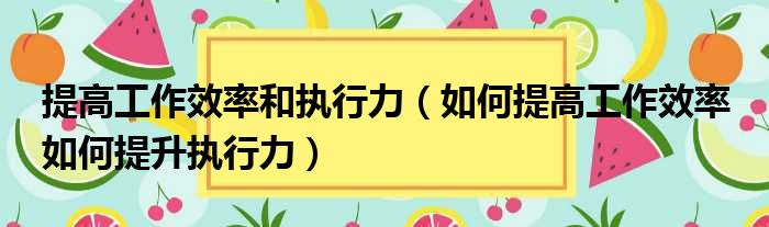 提高工作效率和执行力(如何提高工作效率 如何提升执行力)