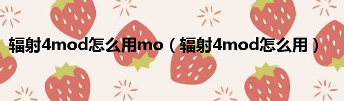 辐射4mod怎么用mo(辐射4mod怎么用)