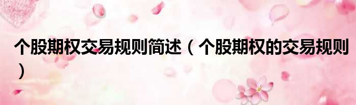 大家好,今天小六子来为大家解答以下的问题,关于个股期权交易规则简述,个股期权的交易规则这个很多人还不知道,现在让我们一起来看看吧!