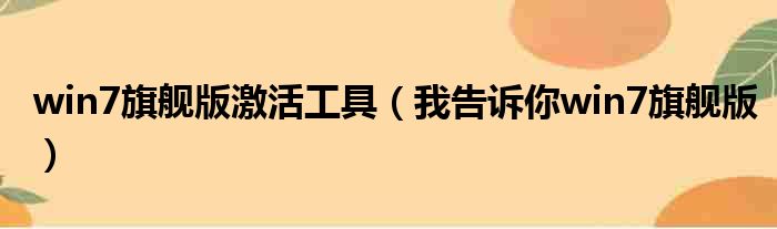 win7旗舰版激活工具(我告诉你win7旗舰版)