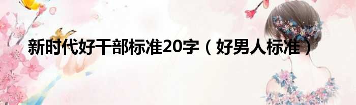 大家好,今天小六子来为大家解答以下的问题,关于新时代好干部标准20字,好男人标准这个很多人还不知道,现在让我们一起来看看吧!