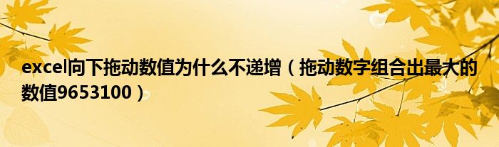 导读 大家好,今天小六子来为大家解答以下的问题,关于excel向下拖动数值为什么不递增,拖动数字组合出最大的数值9653100这个很多人还不知道,现