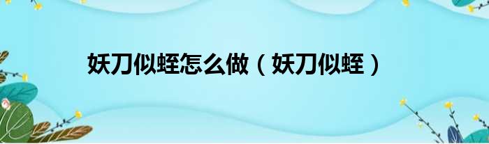 妖刀似蛭怎么做(妖刀似蛭)