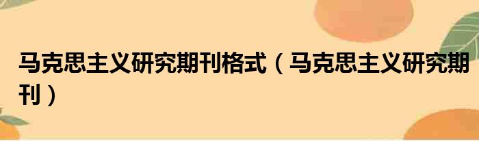 马克思主义研究期刊格式(马克思主义研究期刊)