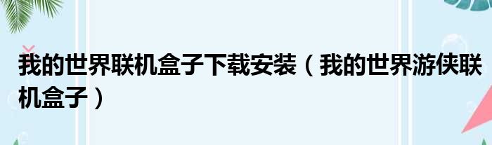 我的世界联机盒子下载安装(我的世界游侠联机盒子)