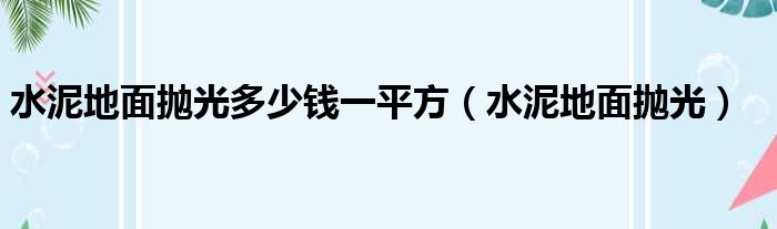 水泥地面抛光多少钱一平方(水泥地面抛光)