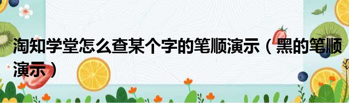 淘知学堂怎么查某个字的笔顺演示(黑的笔顺演示)
