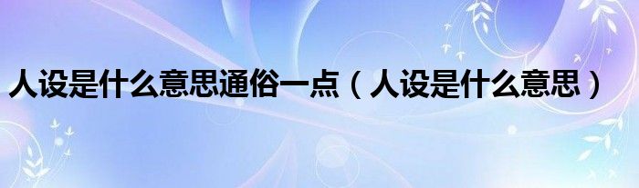 导读 大家好,今天小六子来为大家解答以下的问题,关于人设是什么意思通俗一点,人设是什么意思这个很多人还不知道,现在让我们一起来看看吧!1、