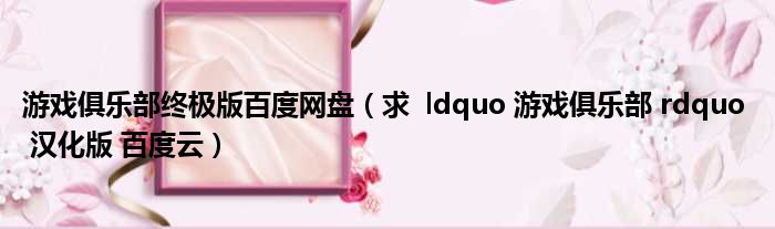 导读 大家好,今天小六子来为大家解答以下的问题,关于游戏俱乐部终极版百度网盘,求 ldquo 游戏俱乐部 rdquo 汉化版 百度云这个很多人