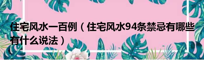 住宅风水一百例(住宅风水94条禁忌有哪些 有什么说法)
