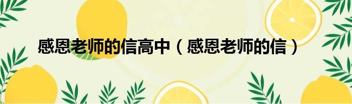 大家好,今天小六子来为大家解答以下的问题,关于感恩老师的信高中,感恩老师的信这个很多人还不知道,现在让我们一起来看看吧!