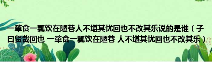 一箪食一瓢饮在陋巷人不堪其忧回也不改其乐说的是谁(子曰贤哉回也 一箪食一瓢饮在陋巷 人不堪其忧回也不改其乐)
