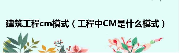 导读 大家好,今天小六子来为大家解答以下的问题,关于建筑工程cm模式,工程中CM是什么模式这个很多人还不知道,现在让我们一起来看看吧!1、CM模