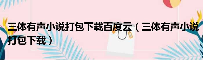 导读 大家好,今天小六子来为大家解答以下的问题,关于三体有声小说打包下载百度云,三体有声小说打包下载这个很多人还不知道,现在让我们一起来