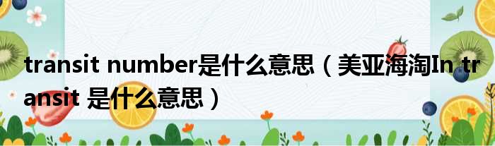 导读 大家好,今天小六子来为大家解答以下的问题,关于transit number是什么意思,美亚海淘In transit 是什么意思这个很多人还不知道,现在让