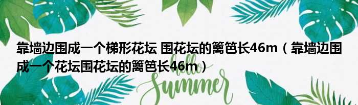 靠墙边围成一个梯形花坛 围花坛的篱笆长46m(靠墙边围成一个花坛围花坛的篱笆长46m)