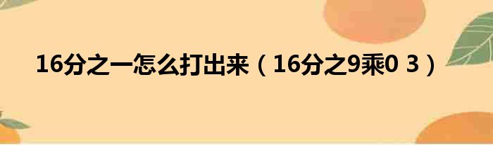 16分之一怎么打出来(16分之9乘0 3)