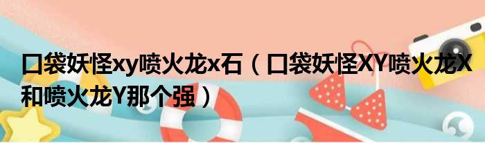 导读 大家好,今天小六子来为大家解答以下的问题,关于口袋妖怪xy喷火龙x石,口袋妖怪XY喷火龙X和喷火龙Y那个强这个很多人还不知道,现在让我们一