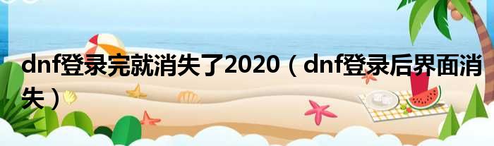 导读 大家好,今天小六子来为大家解答以下的问题,关于dnf登录完就消失了2020,dnf登录后界面消失这个很多人还不知道,现在让我们一起来看看吧!1