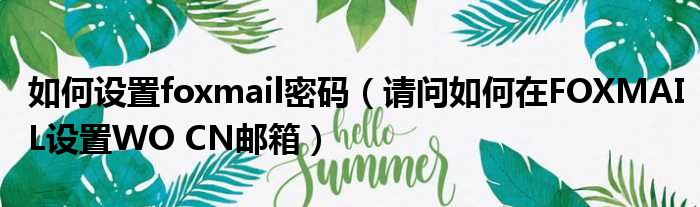 如何设置foxmail密码(请问如何在FOXMAIL设置WO CN邮箱)