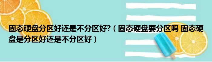固态硬盘分区好还是不分区好?(固态硬盘要分区吗 固态硬盘是分区好还是不分区好)