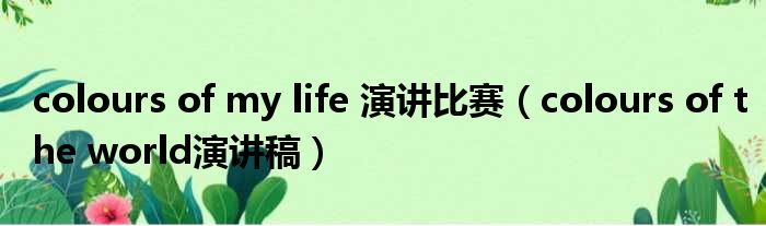 colours of my life 演讲比赛(colours of the world演讲稿)
