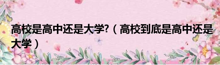 导读 大家好,今天小六子来为大家解答以下的问题,关于高校是高中还是大学?,高校到底是高中还是大学这个很多人还不知道,现在让我们一起来看看吧