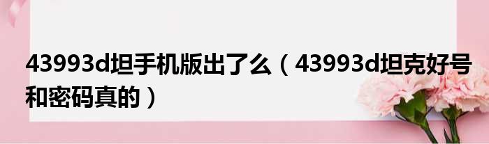 43993d坦手机版出了么(43993d坦克好号和密码真的)