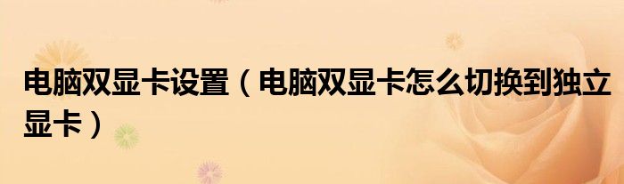 电脑双显卡设置(电脑双显卡怎么切换到独立显卡)