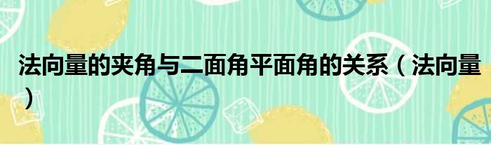 导读 大家好,今天小六子来为大家解答以下的问题,关于法向量的夹角与二面角平面角的关系,法向量这个很多人还不知道,现在让我们一起来看看吧!1