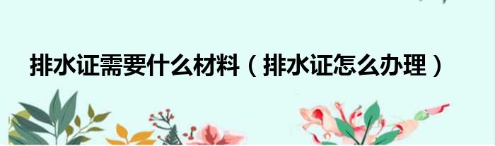 大家好,今天小六子来为大家解答以下的问题,关于排水证需要什么材料,排水证怎么办理这个很多人还不知道,现在让我们一起来看看吧!