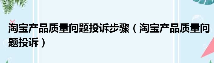 淘宝产品质量问题投诉步骤(淘宝产品质量问题投诉)