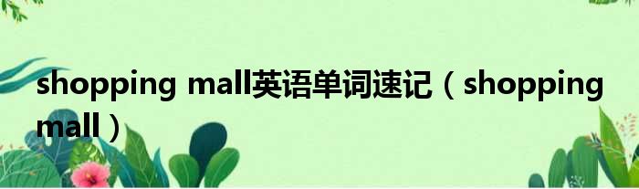 大家好,今天小六子来为大家解答以下的问题,关于shopping mall英语单词速记,shopping mall这个很多人还不知道,现在让我们一起来看看吧!