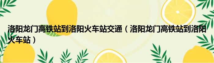 洛阳龙门高铁站到洛阳火车站交通(洛阳龙门高铁站到洛阳火车站)