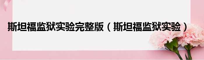 斯坦福监狱实验完整版(斯坦福监狱实验)
