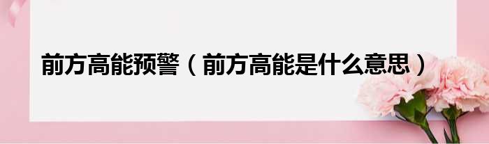 导读 大家好,今天小六子来为大家解答以下的问题,关于前方高能预警,前方高能是什么意思这个很多人还不知道,现在让我们一起来看看吧!1、一般认
