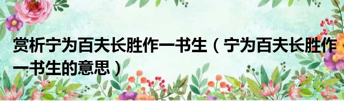 赏析宁为百夫长胜作一书生(宁为百夫长胜作一书生的意思)