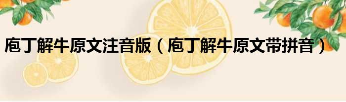 导读 大家好,今天小六子来为大家解答以下的问题,关于庖丁解牛原文注音版,庖丁解牛原文带拼音这个很多人还不知道,现在让我们一起来看看吧!1、