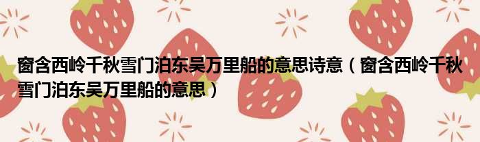 窗含西岭千秋雪门泊东吴万里船的意思诗意(窗含西岭千秋雪门泊东吴万里船的意思)