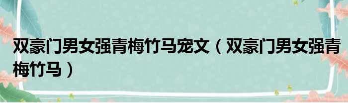 导读 大家好,今天小六子来为大家解答以下的问题,关于双豪门男女强青梅竹马宠文,双豪门男女强青梅竹马这个很多人还不知道,现在让我们一起来看