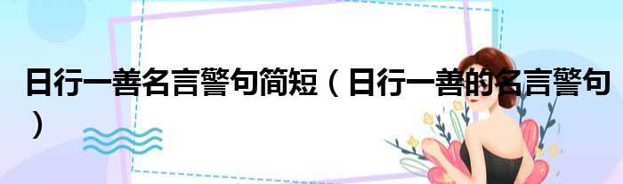 导读 大家好,今天小六子来为大家解答以下的问题,关于日行一善名言警句简短,日行一善的名言警句这个很多人还不知道,现在让我们一起来看看吧!1