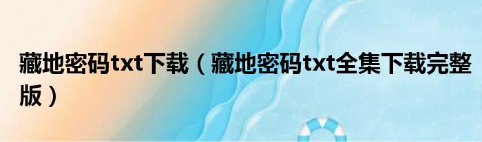 导读 大家好,今天小六子来为大家解答以下的问题,关于藏地密码txt下载,藏地密码txt全集下载完整版这个很多人还不知道,现在让我们一起来看看吧