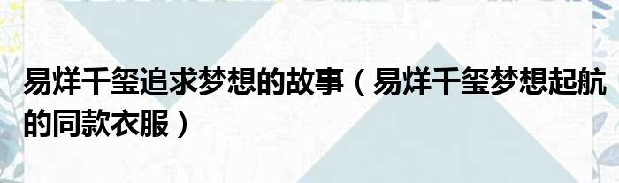 导读 大家好,今天小六子来为大家解答以下的问题,关于易烊千玺追求梦想的故事,易烊千玺梦想起航的同款衣服这个很多人还不知道,现在让我们一起