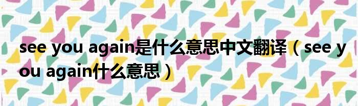 see you again是什么意思中文翻译(see you again什么意思)