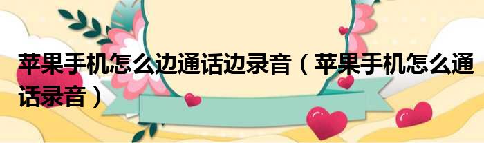 苹果手机怎么边通话边录音(苹果手机怎么通话录音)